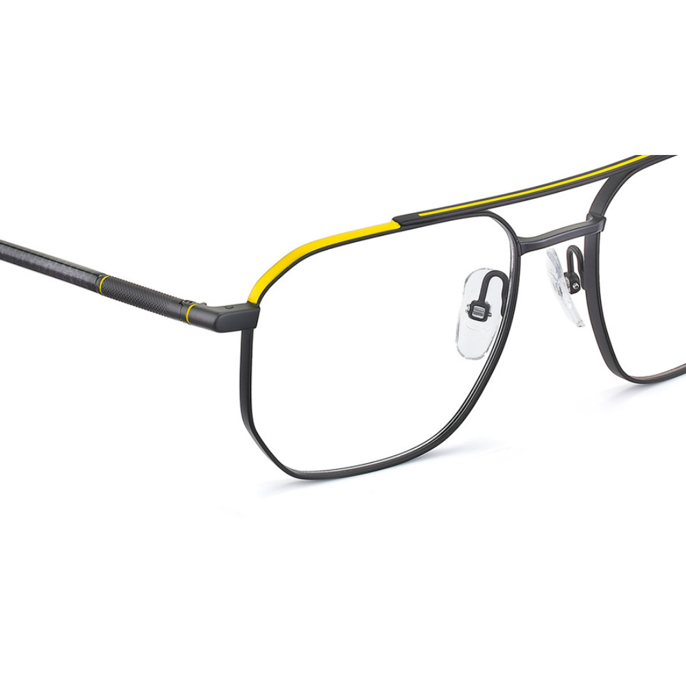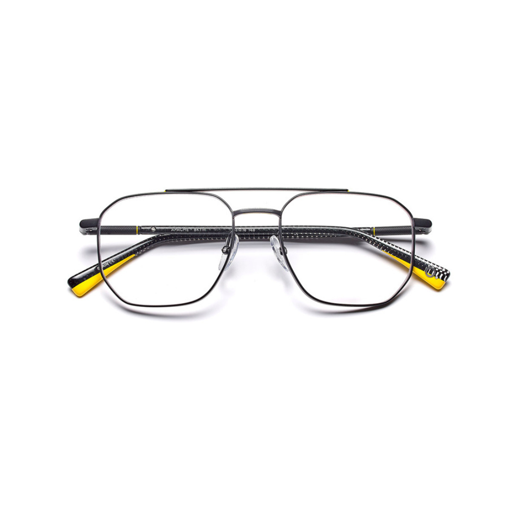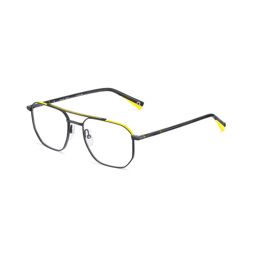 Montatura in metallo, con asta in acetato con meccanismo flex.